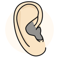 ITE hearing aids are true custom-designed hearing aids. The entire hearing aid is molded to match the contours of your outer ear. The hard plastic casing forms to the exact shape of your ear making to fit snugly. There’s also an ITE style available that only fills the lower part. ITEs do a great job of amplifying sound.